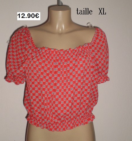 HAUT EPAULES NUES ROUGE PETIT CARREAUX TAILLE XL