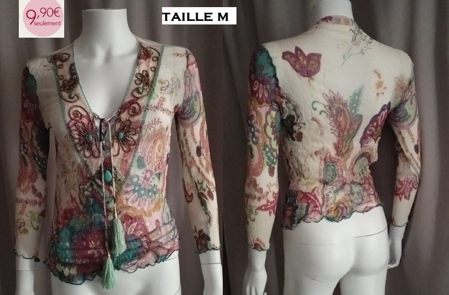 HAUT MANCHES PIERRE BLEU TAILLE M