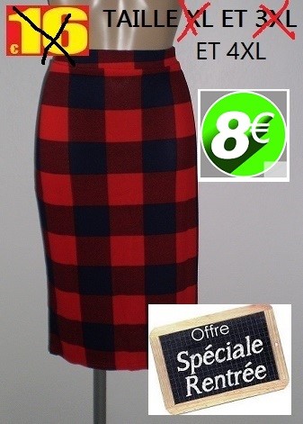 JUPE STRECH A CARREAUX BLANC/ ROUGETAILLE 4XL