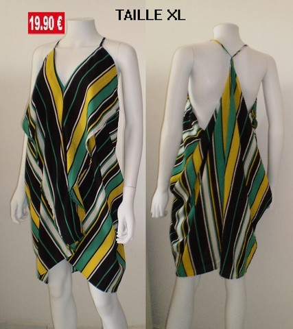 ROBE ASSYMETRIQUE RAYEE VERT/JAUNE taille XL