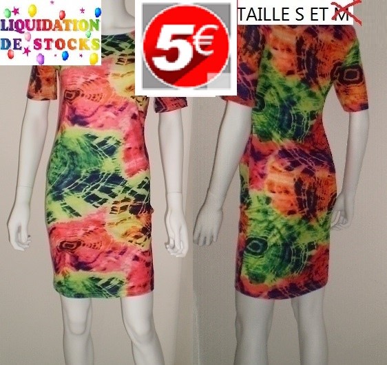 robe bariolee fluo petites manches taille S,M ET 2XL