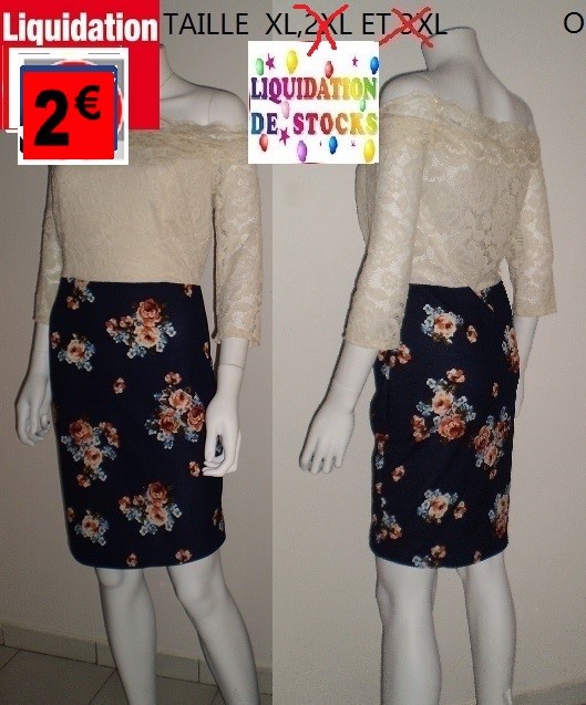 ROBE bas bleu marine fleuri,haut dentelle TAILLE XL