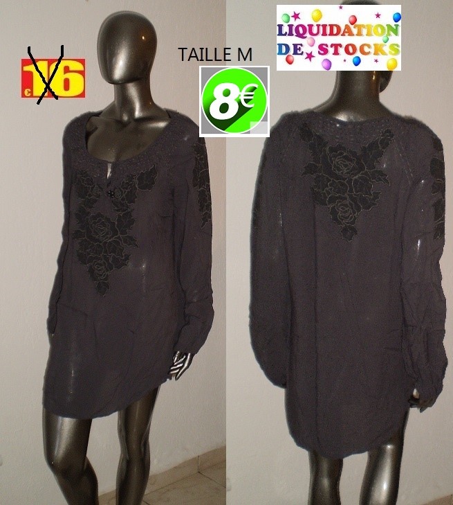 ROBE /TUNIQUE BRODEEE GRIS TAILLE M