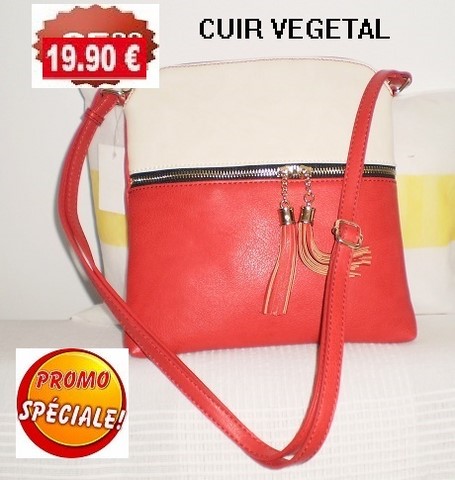 SAC POMPON ROUGE/BLANC CUIR VEGETAL