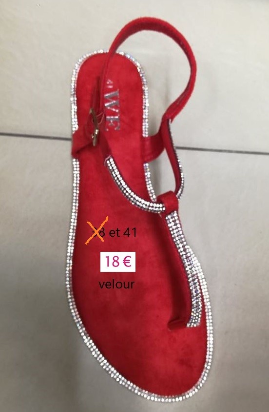 sandales velour rouge et strass TAILLE 41
