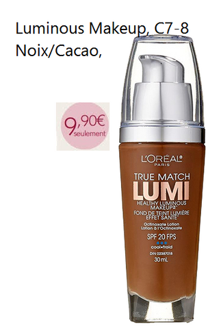 True Match, Fond de teint Healthy Luminous, FPS 20,C7-8 Noix/Cacao,30 ml