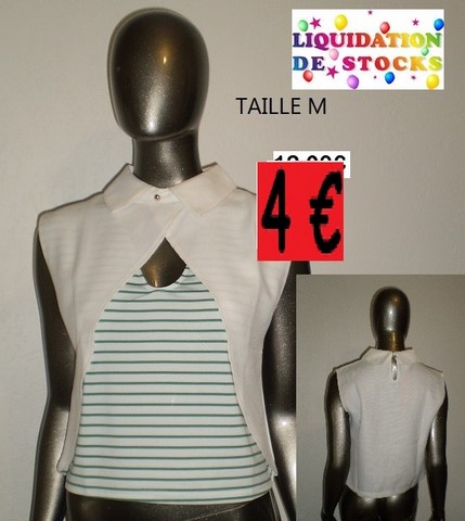 HAUT BLANC RAYE VERT TAILLE M