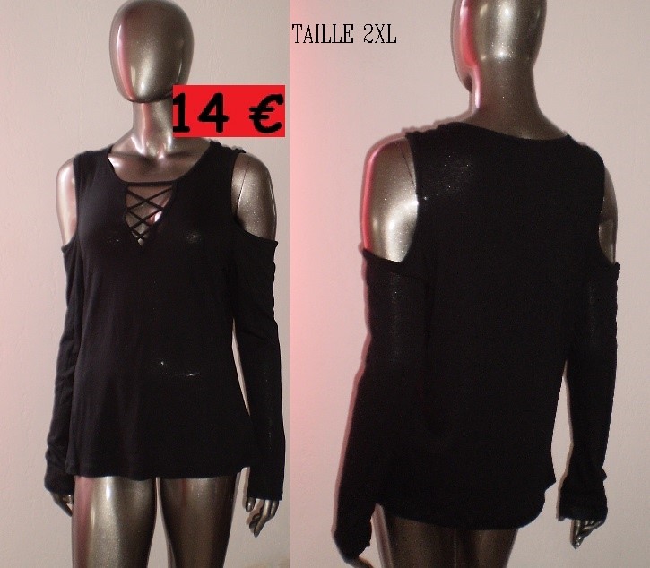 HAUT MANCHES LONGUES NOIR TAILLE 2XL