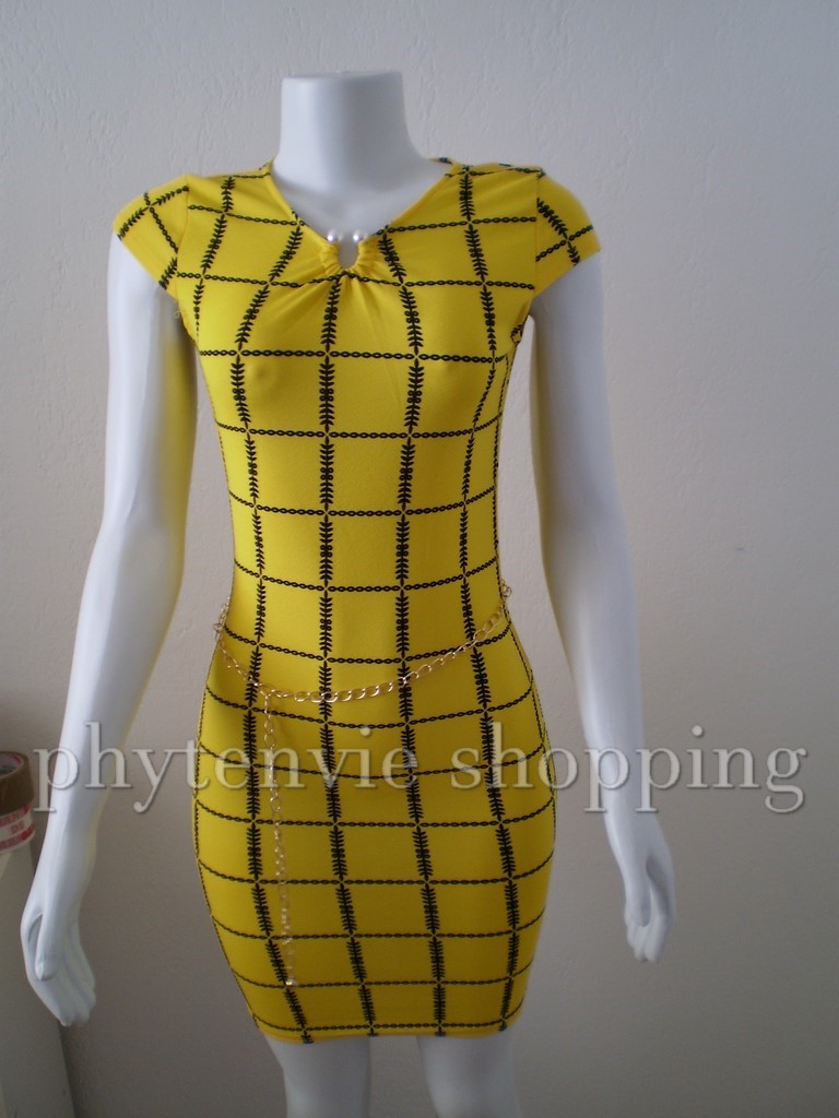 ROBE JAUNE ET NOIR ET SA CEINTURE OR TAILLE M