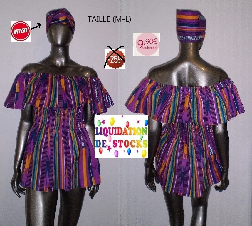 TUNIQUE AF EPAULES NUES FOND VIOLET TAILLE (M-L)