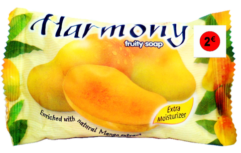 Le savon à la mangue fruité Harmony (Fruitapone Plus) est un savon purement végétal enrichi en extrait naturel de mangue. La combinaison unique entre l'extrait de fruit et le bisabolol (Fruitapone Plus), a un effet hydratant et apaisant.