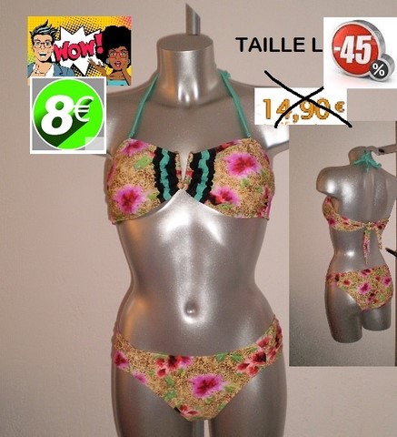 MAILLOT 2 PIECES FLEURI FOND TIGRE TAILLE L