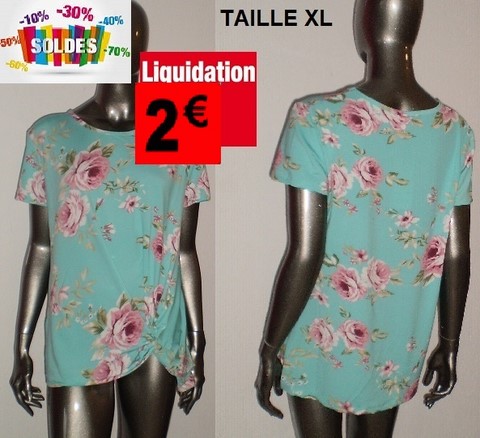 HAUT BLEU FLEURI DRAPPE TAILLE XL