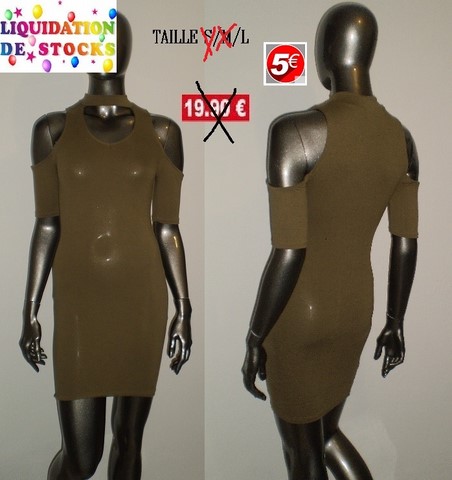 ROBE PETITES MANCHES EPAULES NUES KAKI TAILLE L
