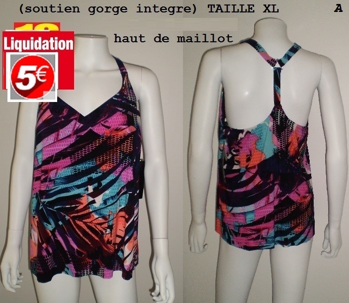 B//HAUT DE MAILLOT BARIOLE DOS NAGEUR(soutien gorge integre) TAILLE XL