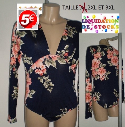 BODY BLEU MARRINE FLEURI TAILLE 2XL ET 3XL
