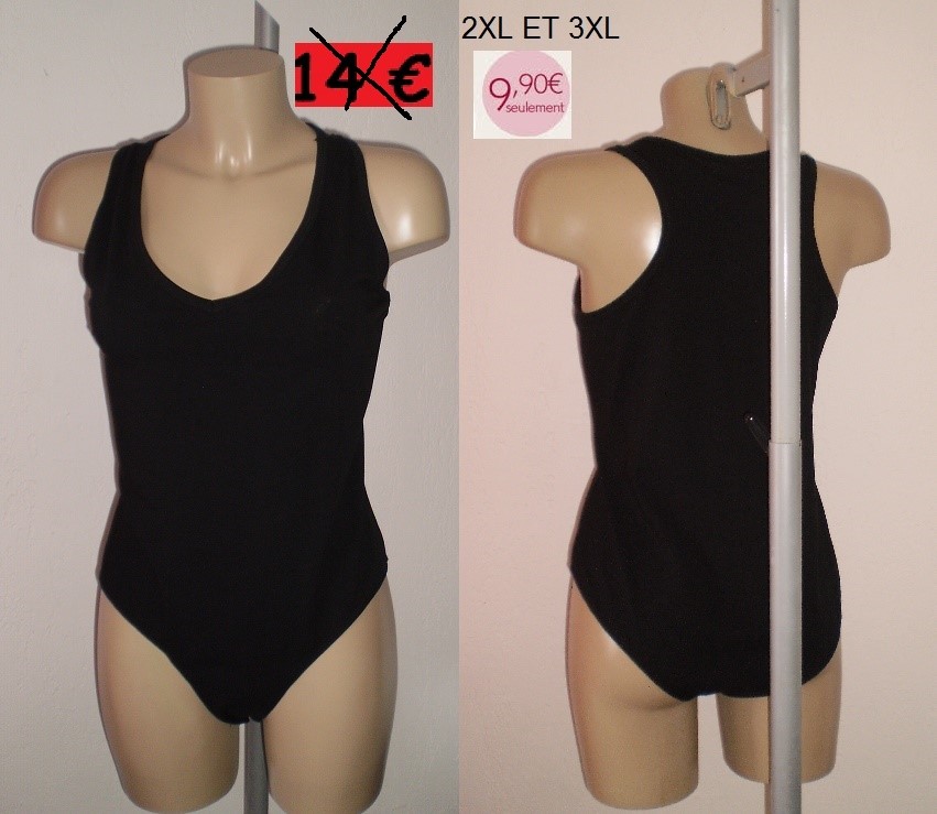 BODY COTON NOIR TAILLES 2XL ET 3XL