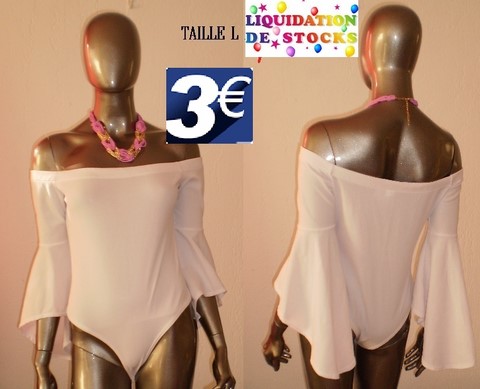 BODY EPAULES NUES BLANC MANCHES TAILLE L