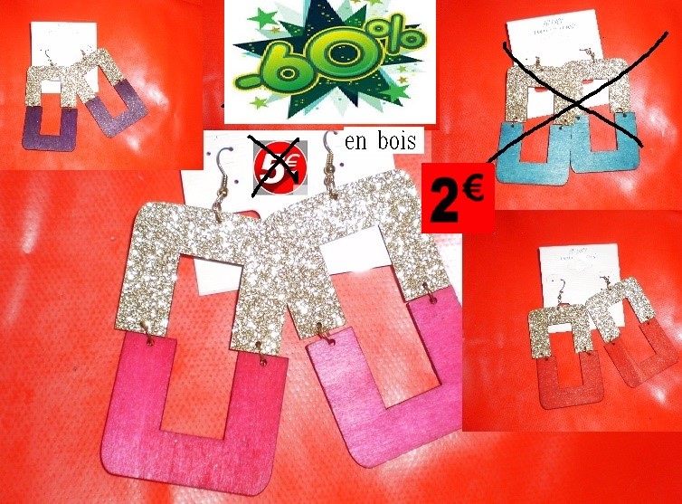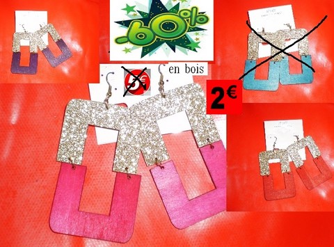 boucles d oreils en bois rouge/violet/fushia
