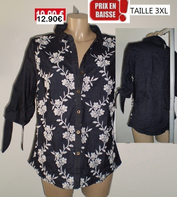 CHEMISE BLEU BRODEE TAILLE 3XL