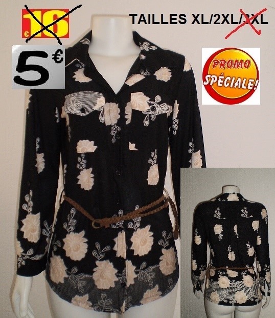 CHEMISE NOIR+CEINTURE TAILLE XL ET 2XL