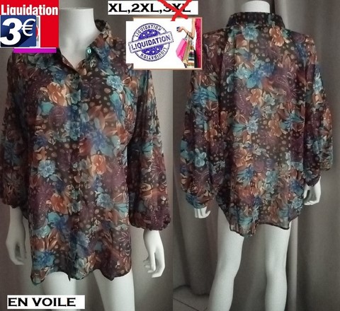 CHEMISE VOILE FOND BLEU TAILLE XL,2XL