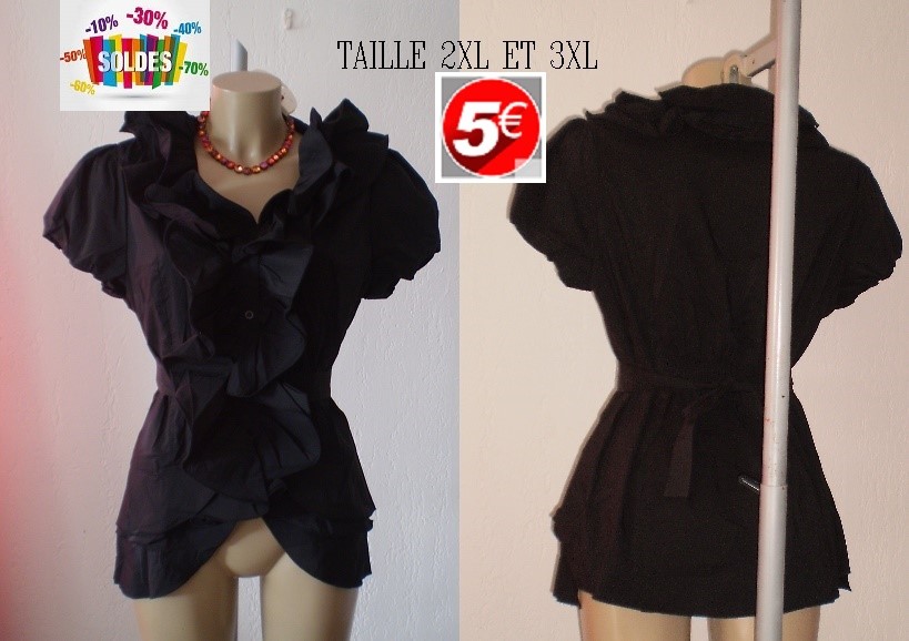 CHEMISIER A VOLANTS NOIR TAILLE 2XL ET 3XL