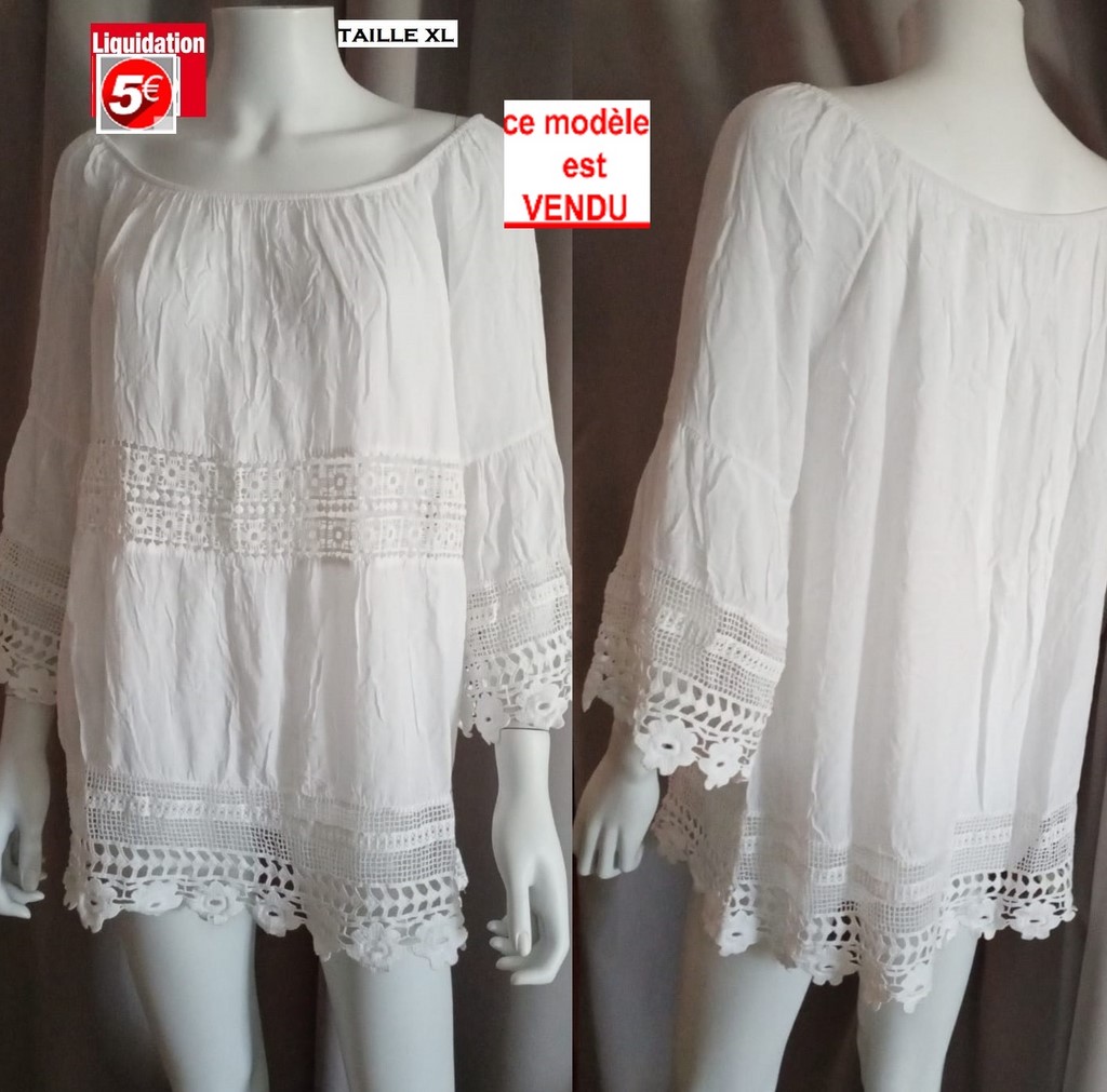 CHEMISIER BLANC DENTELLE TAILLE XL