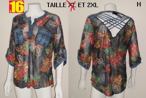 CHEMISIER JEAN ET FLEURES taille 2XL