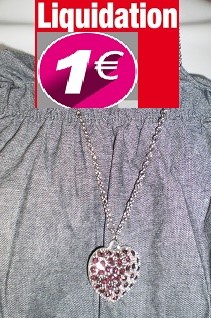 COLIER coeur argent strass rouge