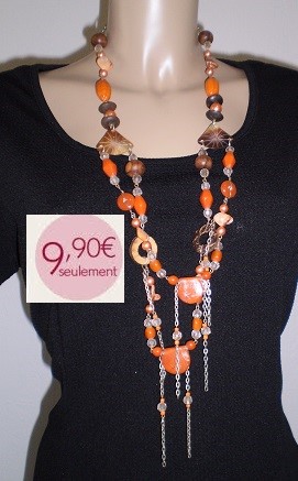 COLLIER SAUTOIRE ORANGE/MARRON