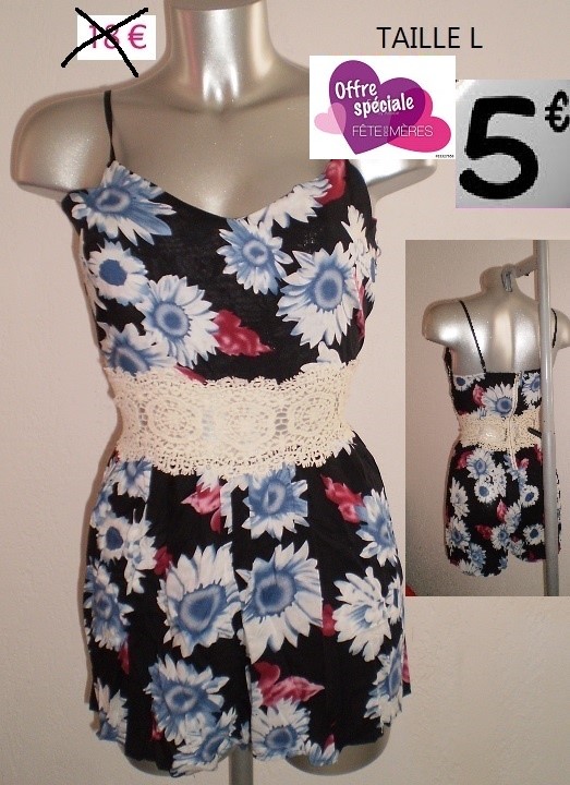 COMBI SHORT FLEURS BLEU TAILLE L