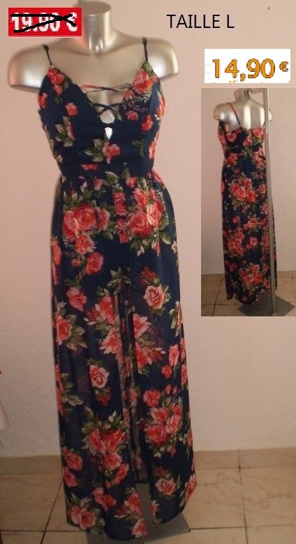 COMBI SHORT /ROBE BLEU FLEURI TAILLE L