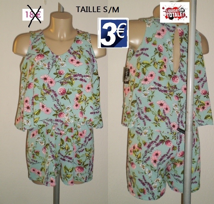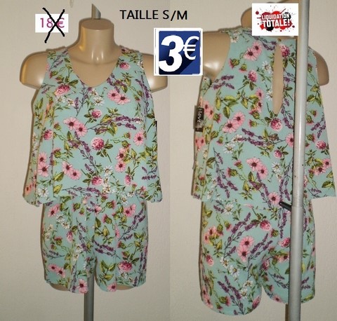 COMBI SHORT VERT FLEURIE TAILLE S