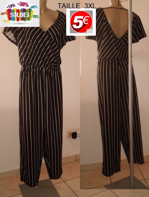 COMBIPANT NOIR RAYE BLANC TAILLE 3XL