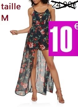 COMBI/ROBE VOILAGE FOND NOIR FINES BRETELLE TAILLE M