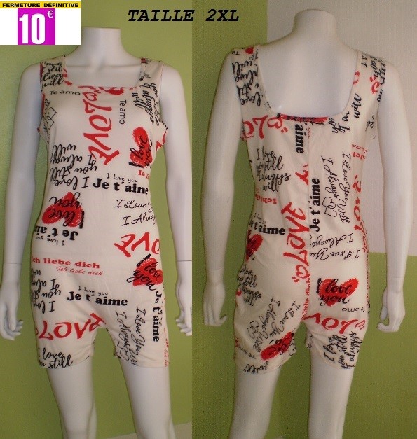 COMBISHORT BLANCHE LOVE TAILLE 2XL