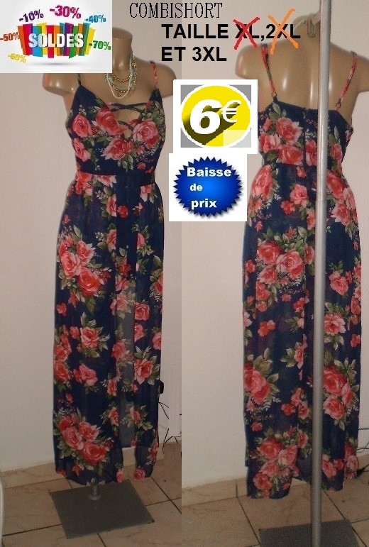 COMBISHORT BLEU FLEURIE TAILLE 3XL