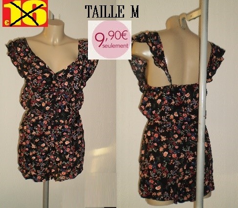 COMBISHORT NOIR FLEURIE TAILLE M