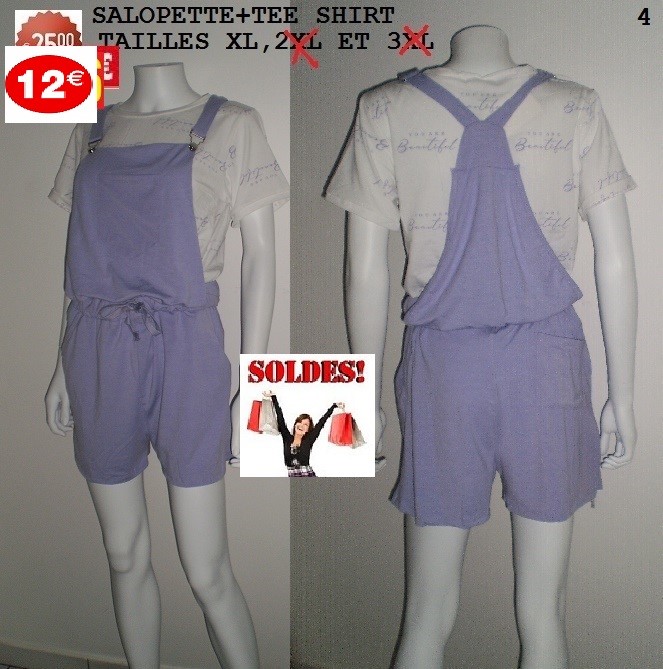 COMBISHORT VIOLET+TEE SHIRT TAILLE XL