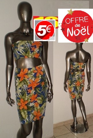 ENS JUPE BUSTIER FEUILLES FONCE TAILLE L