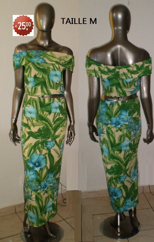 ENS JUPE FLEURS FOND VERT TAILLE M