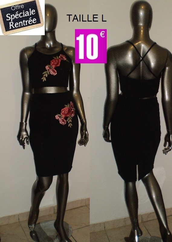 ENS JUPE NOIR FLEURS BRODEES TAILLE L
