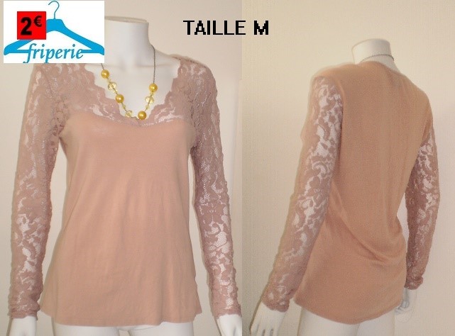FRIP/TOP ROSE MANCHES DENTELLE taille M
