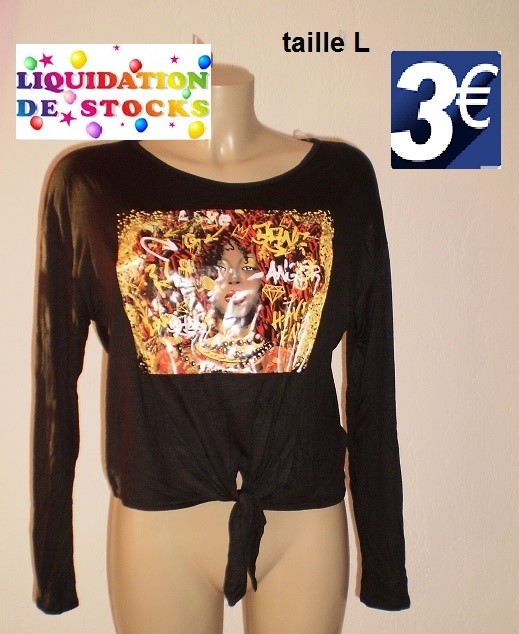 HAUT A MANCHES NOIR VISAGE TAILLE L