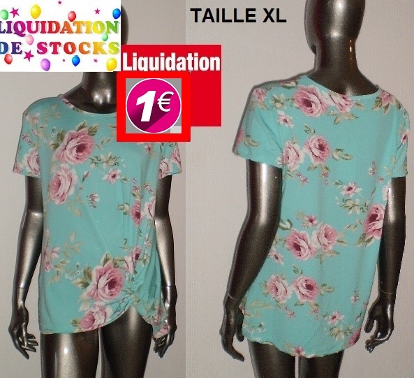 HAUT BLEU FLEURI DRAPPE TAILLE XL
