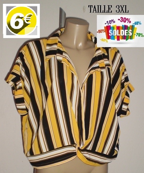 HAUT CROISE RAYE MOUTARDE/NOIR TAILLE 3XL
