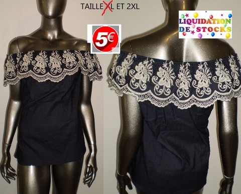 HAUT DENTELLES EPAULES NUES BLEU TAILLE 2XL