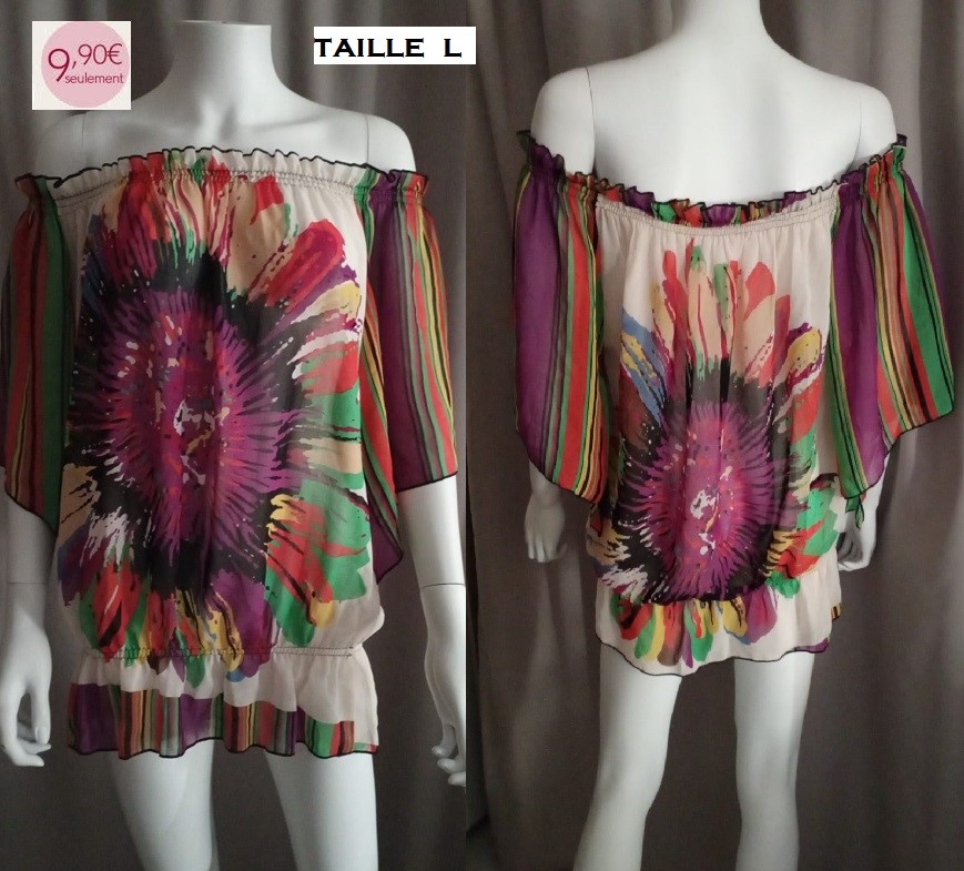 haut epaules nues bariole TAILLE L
