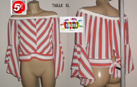 HAUT EPAULES NUES BLANC/ROUGE TAILLE XL